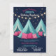 Préparez-vous à une nuit de giggings, de jeux et de temps pour les filles avec cette adorable invitation de fête d'anniversaire de sommeil ! Doté de tentes turquoises, de lampes à cordes et de coussins somptueux sous un ciel étoilé, ce design est le décor parfait pour une fête magique et endormie. Idéal pour les anniversaires d’entre-deux ou d’enfants, cette invitation personnalisable permet aux invitations amis de passer une nuit inoubliable de plaisir.
