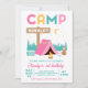 Invitation Filles roses modernes Camping à thème Anniversaire