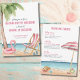 Watercolor Beach Destination Bachelorette Weekend Invitation. Un thème de plage cool aquarelle aux tons rose et turquoise, qui donne l'ambiance d'une escapade sur la plage avec la mariée et ses seins. Des voyages en Floride, en Californie, ou même quelque chose de plus international comme le Mexique, Hawaï ou les Bahamas, ce week-end de filles va rock! Chaise de plage rose et blanc, parasol, et même un flotteur flamand pour plus de plaisir. Des palmiers qui balancent, des coquillages à ramasser, tout est à propos de ces froides villas tropicales. Avec des polices modernes ajoutant une touche de style, c'est le look parfait pour votre week-end de bachelorette. Juste vous et votre équipage, faisant des souvenirs sur un fond de sable et de mer. Si vous voulez un peu plus de "pizzaz" à l'avant, il y a deux objets d'art cachés en haut à droite - un soleil, ou un deuxième palmier. Il suffit de cliquer sur l'icône "oeil" à côté d'eux dans l'éditeur de design pour les faire apparaître. Regardez aussi toutes les pièces de coordination ! Disponible sous forme d'invitation imprimée ou d'invitation numérique téléchargeable que vous pouvez envoyer par e-mail ou avoir imprimé localement !