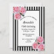 Classic rayures noir et blanc mince comme arrière - plan. Avec des roses roses romantiques, des fleurs comme décoration. Un cadre noir et blanc avec des modèles pour vos informations de fête. Une invitation à la fête du 70e anniversaire, féminine et élégante.