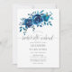 Invitations de week-end à l'indigo Navy et à la bachelorette blanche fleurie avec itinéraire conçu pour être rapidement et facilement customisé aux détails de votre événement.