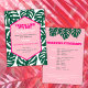 Préparez-vous à fêter la mariée en style avec notre invitation à la soirée bachelorette à thème tropical ! Notre design présente de superbes feuilles de monastères de parties scintillant verte et des tons roses vibrants, ce qui en fait le choix parfait pour une célébration de destination ensoleillée. L'invitation est complète avec la phrase amusante et flirtante "Tropique comme il fait chaud, elle noue le noeud", donnant le ton pour un week-end rempli d'aventure et de souvenirs. De plus, notre invitation comprend un itinéraire de week-end, afin que vos invités ne manquent pas un rythme. Alors, qu'attendez-vous ? Commençons cette fête tropicale !