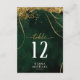 Un arrière - plan d'aquarelle dans les tons vert émeraude est surmonté d'une abstraite de lignes dorées fines et d'effets lumineux scintillants pour créer les pièces de cette belle suite mariage. La carte de numéro de table mariage présentée ici présente également une calligraphie élégante et un modèle pour ajouter facilement vos propres noms, date de mariage et numéros de table. Recherchez ID867 pour voir d'autres pièces et choix de couleurs pour cet ensemble.