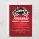 Terminé, fini, gradué ! à damiers drapeaux invitation en rouge à thème de course pour votre lycée qui a atteint la ligne d'arrivée!