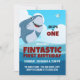 Célébrez avec cette mignonne invitation Fintastic First Birthday avec un arrière - plan bleu de l'océan, ciel d'été, et un joyeux dessin animé de requin. Personnalisez votre invitation à ajouter les détails de votre fête d'anniversaire dans une police amusante et facile à lire. Parfait pour toute invitation d'anniversaire de requin amoureux.