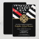 This design features a firemen's flag with black and white stripes, and a thin red line stripe as well. A fireman's badge sits above all of the party details for the graduating firefighter. This design also works great for a retiring firefighter, lieutenant, or chief's retirement party.