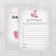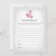 Profitez de jouer à ce jeu de baby shower Guess That Baby Food sur un arrière - plan d'argent avec de mignons triangles d'argent. Une maman de ballerine flamand chéri et bébé dans le coin inférieur gauche avec des fleurs roses sur la tête et à côté du corps. Des modèles ont été fournis sur le dos.