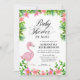 L'invitation de baby shower flamingo rose mignon est parfaite pour une douche par la poste. Le design comporte une bordure de feuilles tropicaux et de fleurs roses et est accentué par un joli flamant rose. Cette invitation est parfaite pour une petite fille.