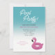 Fond ombré sarcelle pour une invitation à une fête au bord de la piscine avec un flamant rose flottant en bas.
