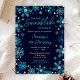 Cette invitation élégante et séduisante présente des flocons de neige couleur bleu et argent en faux parties scintillant et des étincelles sur un arrière - plan bleu marine. Il est parfait pour une fête d'anniversaire d'hiver ou de Noël.