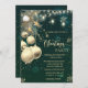 Boules de Noël élégantes, lumières à cordes et étoiles sur arrière - plan vert. Ces belles invitations de Noël sont parfaites pour les invitations à des dîners de Noël, les invitations à des échanges de cadeaux de Noël, les collectes de fonds de Noël, les invitations à des fêtes de Noël, et d'autres événements qui ont lieu pendant le mois de décembre. Il vous suffit d'utiliser les champs modèle pour ajouter vos propres informations d'événement.