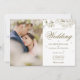 Une invitation de mariage élégante avec de délicates fleurs printanières encadrant vos détails de mariage en lettrage doré élégant. Personnalisez avec les détails de votre événement spécial et votre photo spéciale. Le verso présente des pétales de fleurs blanches éparpillées. Conçu par Thisisnotme©