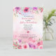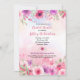 Les fleurs roses et violettes douces sont rendues dans un effet d'aquarelle contre un arrière - plan de lavage d'aquarelle rose avec des éclaboussures de peinture subtiles. Parfait pour une fête de mariée, un anniversaire ou une fête de fiançailles sur le thème du rose, de l'aquarelle ou du jardin. Disponible avec des produits correspondants.