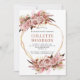 Une invitation à la fête de retraite florale rose verdoyante. Roses luxuriants, pampas, fleurs séchées et cadre parties scintillant or. Typographie rose et noir pour un contraste de teintes qui aident cet invitation à pop avec la couleur.