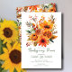 Faites-vous plaisir avec notre belle invitation à dîner florale de Thanksgiving. Cette invitation élégamment conçue présente un superbe éventail de fleurs automnales, capturant parfaitement l'esprit de la saison. Invitations vos proches à se rassembler autour de la table et partager la chaleur et la gratitude de cette occasion spéciale. Idéale pour des rencontres formelles et décontractées, cette invitation donne le ton d'une fête mémorable remplie de joie et de convivialité.