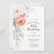 Célébrez un 40ème anniversaire de style féminin avec cette élégante invitation à la fête florale aquarelle avec pêche corallienne et pivoines d'ivoire avec verdure. Personnalisez le modèle de texte avec les détails de votre événement. Cette invitation est disponible en format numérique à la fois imprimé et en téléchargement instantané pour votre commodité.