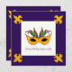 Laissez les bons moments rouler ce Mardi Gras avec ces Invitations Fleur de Lis Mask Mardi gras Party. Les invitations carrés sont accompagnées d'une bordure en indigo violet avec des symboles de la Fleur de Lis dorée qui ornent les coins autour d'un masque Mardi Gras sur un arrière - plan blanc accompagné du texte "Laissez les bons temps rouler". Ajoutez les informations de votre parti à l'arrière en utilisant le modèle. Le texte à l'arrière est entièrement personnalisable, ce qui rend ces invitations adaptées à tous les évènements de Mardi gras. Cliquez sur "customiser" pour modifier la police et le placement de texte ou pour ajouter vos propres images.