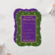 Simple mais élégant, de minuscules motifs de fleurs de lys dorées défilent sur des champs de vert et de violet éclatants. Vous remplissez les détails de votre fête, nous faisons le design et l'impression pour vous donner une super invitation que vos amis ne peuvent pas résister.
