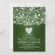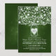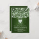 Belle faire-part de mariage vert foncé avec jarre de maçon remplie de fleurs, feuilles, branches d'arbres et coeurs d'amour brillants. Parfait invitation décontracté pour votre mariage campagnard rustique avec jarres en mason fleuri.