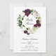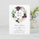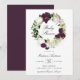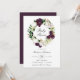 Élégantes invitations florales de douches pour bébé avec "Baby shower" entourées de couronnes de prune foncé et de fleurs d'aquarelle blanche accentuées de feuilles d'or rose et de feuilles verts. Personnalisez les invitations de fleurs de prune en ajoutant vos détails de douche ci-dessous. L'invitation revient à un arrière - plan solide couleur prune foncée. Conçu pour coordonner avec notre collection Dark Plum Floral.