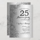 Invitation de fête d'anniversaire de mariage de 25 ans Fleur de Silver Black. Design moderne minimaliste avec des accents de dessins de contours botaniques et une police de caractères script. Carte d'invitation élégante parfaite pour une célébration stylée. Peut être personnalisée pour n'importe quelle année de mariage. Cartes d'invitation Zazzle imprimées ou modèle de template numérique téléchargeable instantanément.