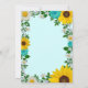 Invitation rustique d'anniversaire de pays avec des tournesols vibrants, des marguerites blanches traditionnelles et des fleurs turquoises contre un arrière - plan d'aqua clair avec l'haleine de bébé et des accents de verdure botanique
