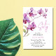 Elégante aquarelle branche orchidée violette dans un cadre blanc invitation anniversaire. Personnalisation facile pour le nom, l'âge et les détails de l'événement selon vos besoins.