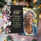 Un design moderne élégant avec le numéro 69 en or, des fleurs aquarelles et une photo spéciale de la personne qui fête son anniversaire au verso de l'invitation. Personnalisez les détails pour une célébration d'anniversaire unique et chic.