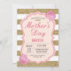 Invitation de brunch de jour de mères. Fleur rose de fleur. Parties scintillantes d'or. Rougissent la fleur florale d'aquarelle chic. Parties scintillantes d'or et rayures blanches. Couleur florale d'aquarelle. Digitals imprimables. Pour davantage de personnalisation, cliquez sur svp la "personnaliser il" bouton et utilisez notre outil de conception pour modifier ce modèle.