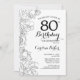 Black White Floral 80th Birthday Party Invitation. Design moderne minimaliste avec accents de dessin botanique et police de script de typographie. Carte invitation simple et tendance, parfaite pour une célébration anniversaire élégante. Peut être customisé à n'importe quel âge. Invitations Zazzle imprimées ou téléchargement instantané modèle imprimable numérique.