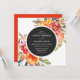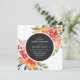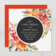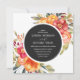 Le design élégant et rustique présente une couronne de belles fleurs acryliques peintes en rose vif, orange et jaune, avec des ppops de feuilles et feuillage violet et vert colorés. Carte inversée dans une orange entièrement personnalisable. Cette invitation est parfaite pour un mariage rustique élégant, une fête d'été ou de printemps
