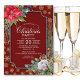 Célébrez la saison festive et invitations vos amis et les proches avec cette fleur de poinsettia vibrante avec l'invitation de Noël des flocons d'or.