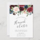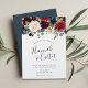 Notre faire-part de mariage Radiant Bloom encadre vos détails mariages avec une bordure supérieure de fleurs d'aquarelle peintes et de feuillage dans des tons riches de bijoux de marsala bordeaux, bleu marine, cerise, blush et vert. Un choix moderne mais organique dans des couleurs vibrantes avec des botaniques luxuriants et vos noms en lettres manuscrites.