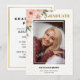 Cette invitation à la fête de remise de diplômes comprend la fleur rose, la photo du diplômé, le nom, le nom de l'école et l'année de remise de diplômes, ainsi que les détails de la fête de remise de diplômes sur le dos.