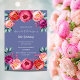 Une carte d'invitation élégante pour une fête d'anniversaire de 50e (ou tout âge). Avec des fleurs couleur rose vif, violet et or rose, couleur aquarelle, fleuris comme décoration. Un arrière - plan bleu branché. Le nom est écrit avec un script de style écrit à la main.