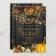 Belles fleurs automnales rouillées et bordeaux foncé et bordures citrouilles avec des cordes de lumières scintillantes dorées sur un arrière - plan de grange brun foncé faisant une élégante invitation à la retraite avec une écriture manuscrite à la mode script de typographie or. ++++++++++ Facile à personnaliser avec vos détails ! Convient pour le rustique traditionnel | pays | ferme | jardin extérieur famille et amis réunions.