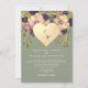 Faites une déclaration audacieuse et romantique avec ce faire-part de mariage boho fleur sauvage, avec un arrangement floral d'aquarelle luxuriante dans les tons bijoux, dressé contre un arrière - plan vert sage doux. Le monogramme métallique de coeur doré apporte une touche élégante et luxueuse, alliant charme rustique et modernité. Parfait pour les mariages de automne, les fêtes de jardin ou les cérémonies d'inspiration nature. Entièrement personnalisable avec vos détails et initiales de mariage.