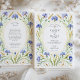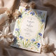 Invitation vos invités à une célébration pleine de charme naturel et d'élégance artistique. Ce magnifique faire-part de mariage est orné d'une bordure d'aquarelle peinte à la main de beaux fleurs sauvages, présentant des fleurs de maïs éclatantes dans les tons bleu cornflower et lavande douce, gracieusement entrelacées avec des tiges rustiques de blé d'or. Le design symétrique d'inspiration Art Nouveau est composé de vignes vertes et dorées tourbillonnantes qui créent un cadre ovale magnifique pour vos détails mariages. Un oval doré délicat peint à la main au centre apporte une touche de luxe raffiné. Ce design est parfait pour un mariage de campagne, rustique-chic, fin été ou début automne.