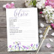 Fiche de prédictions et conseils pour convenir baby shower fleur sauvage, fille ou thème floral d'été. Une activité amusante pour impliquer les invités à votre baby shower, avec des paroles de sagesse pour les parents d'être. Le design botanique délicat et féminin est écrit à la main avec des "conseils" en calligraphie de script élégante. Il a une jolie bordure de fleurs sauvages aquarelles dans les tons lilas, lavande, violet, rose et bleu. Un dainty floral moderne avec girly, bohème cottage thème jardin. S'il vous plaît voir ma collection Fleur sauvage violet pour les articles correspondants ou, m'envoyer un message pour créer les modèles dont vous avez besoin.
