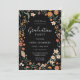 Une invitation à la remise des diplômes fleurs sauvages de printemps fraîchement chic dans les couleurs audacieuses de l'orange, et rose avec feuilles verts sur le noir. Si vous souhaitez modifier le style de police, la couleur ou le placement du texte, cliquez simplement sur le bouton "Customiser plus loin" et utilisez l'outil de conception simple.