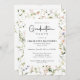 Invitation du Fleur sauvage d'élégance rustique Frame Graduation Party - avec, dainty, fleurs d'aquarelle avec typographie moderne, script. Au verso de l'invitation se trouve un motif fleur sauvage boho de coordination.