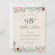 Invitations d'anniversaire pour adultes | Rustique Beige floral Elégant 98ème Invitation Ce design classique et vintage présente un fleur sauvage floral bohème simple thème et typographie de script sur un arrière - plan beige. Personnalisez l'invitation avec vos détails et si vous voulez réorganiser le style et le placement du texte, veuillez appuyer sur le bouton "Cliquez pour customiser plus loin". Pour plus de produits dans le même thème visitez ma boutique : Youtopia Official.