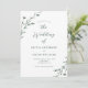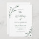 Cette belle faire-part de mariage rustique présente un arrière - plan blanc classique avec des fleurs sauvages dessinés à la main dans un vert profond et une typographie élégante. C'est le design parfait pour un mariage rustique mais élégant ! Reportez-vous à la collection pour la coordination des éléments.