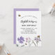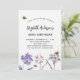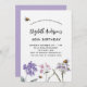 Un arrière - plan blanc. Décoré d'abeilles et de fleurs sauvages peints dans le violet et le rose. Personnalisez et ajoutez un nom et des détails du parti.