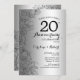 Invitation pour une fête d'anniversaire de mariage de 20 ans Fleur Silver Black. Design moderne minimaliste avec des dessins au trait de botanique et une typographie en police script. Carte d'invitation élégante parfaite pour une célébration élégante. Peut être personnalisée pour n'importe quelle année de mariage. Cartes d'invitation Zazzle imprimées ou modèle de template numérique imprimable instantanément.