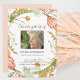 Cadre d'aquarelle florale tropicale dans des pastels doux invitation photo Life Celebration. Invitations amis et la famille à une célébration de la vie ou un service commémoratif pour honorer votre être cher décédé. Conception féminine pour grand-mère, mère, soeur, tante, fille ou cousine.