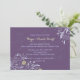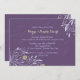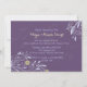 Une invitation élégante avec des volutes et des fleurs abstraites gracieuses dans la teinte la plus légère de lavande sur un fond prune plus profond. Convient à pratiquement toutes les occasions heureuses.