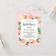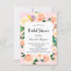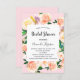 Une invitation à la douche nuptiale fleurie tendance en rose vif, or rose et blanc. Un arrière - plan rose vif chic à l'avant. Décoré de grandes fleurs verdoyantes aux couleurs de l'eau, de fleurs blanches, d'or rose, de rose vif et de verdure. Personnalisez et ajoutez le nom de la mariée et les détails du parti. Texte noir. Dos : arrière - plan de couleur rose vif.