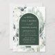 Cette carte de faire-part de mariage présente une végétation hivernale peinte à la main, des fleurs de coton aux textures dorées et aquarelles et un cadre en arc. Pour une personnalisation plus avancée de cette conception, cliquez sur le lien "customiser plus loin". Des articles correspondants sont également disponibles.
