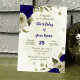 Belles invitations romantiques à la fête d'anniversaire avec des fleurs bleues et beiges royales et quelques feuilles. POUR PLUS DE PRODUITS CORRESPONDANTS cliquez sur la collection ci-dessus ou contactez-moi